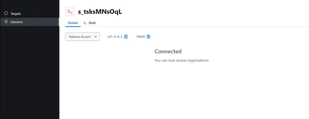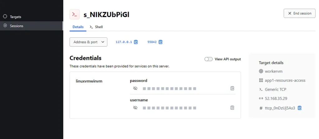 Here you go , so imagine if you are HCP admin and the team who are requested to configure workervm are different, they won’t even see the original IP. All they have now here is a loopback IP and a random port, with static credentials they can copy and login.