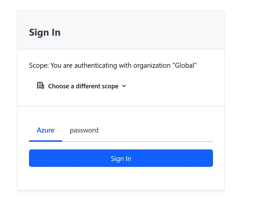 Step 3:- Create an org and setup Auth Method to SSO using MS Entra ID if you want to else you can carry on with password Auth method. I have already setup SSO and hence it prompts me to sign on to the Org.