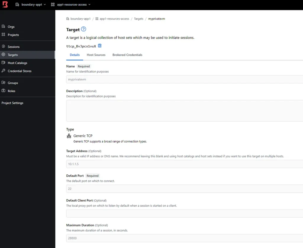 This feature enables Boundary as a credential broker for infrastructure targets by binding credentials with user sessions, and surfacing those credentials during session initialization. However in this for demonstration purpose I have gone with static credentials within HCP Boundary.