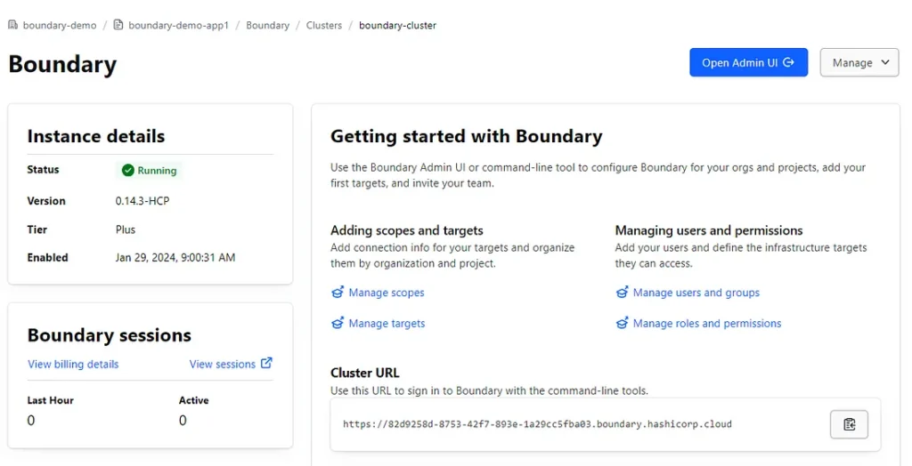 Step 2: Connect to Cluster and use Admin UI to configure Boundary. I have already configured SSO so it will prompt me to sign in. You can follow HCP documentation on how to configure SSO with OIDC.