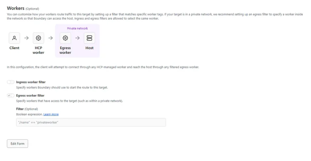 Workers are primarily used as network proxies for Boundary sessions, they allow you to access private targets. Instead of exposing a private network to the public, or allowing users to have access to entire private networks, workers create a direct network tunnel between users and targets.
