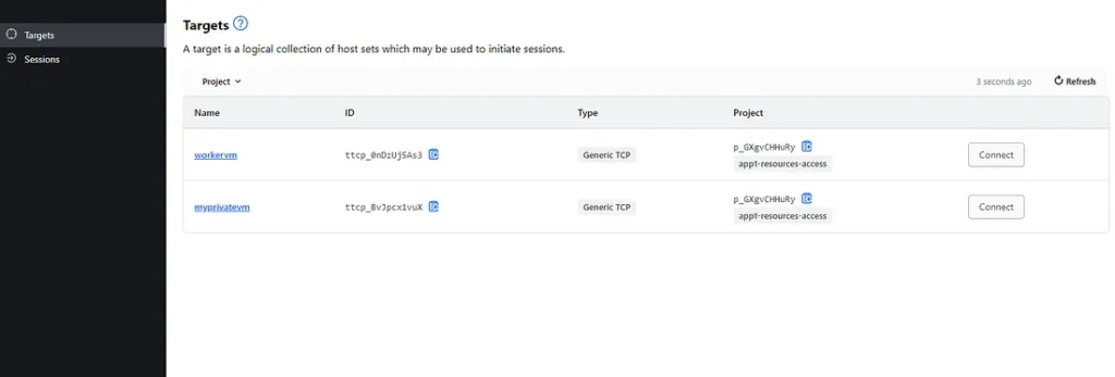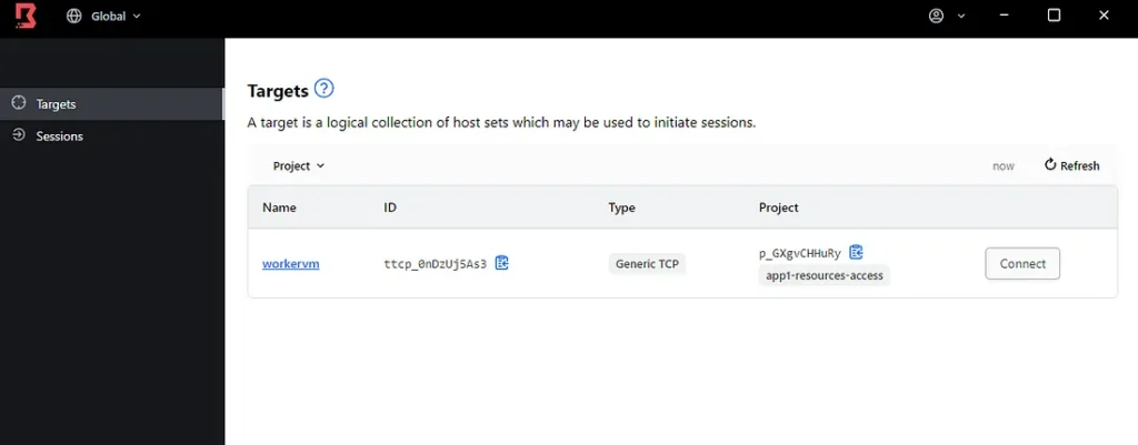 Step 8: Go back to the HCP Boundary Client and you should have a target now there named workervm. Just Click connect on it.